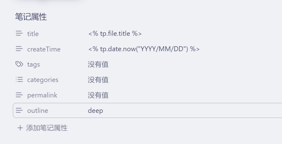 createTime: <% tp.date.now("YYYY/MM/DD") %>